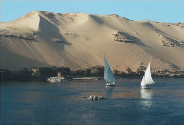 尼罗河纵贯非洲大陆东北部,流经布隆迪、卢旺达、坦桑尼亚、乌干达、埃塞俄比亚、苏丹、埃及,跨越世界上面积最大的撒哈拉沙漠,最后注入地中海。流域面积约335万平方公里,占非洲大陆面积的九分之一,全长6650公里。