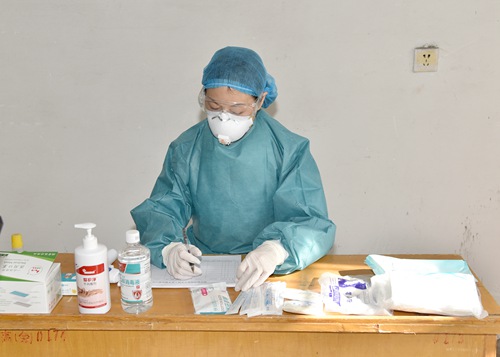 身着防护服的校医迅速对其重测体温,做好记录,并询问学生及共同居住人员有无疫情重点地区相关史。