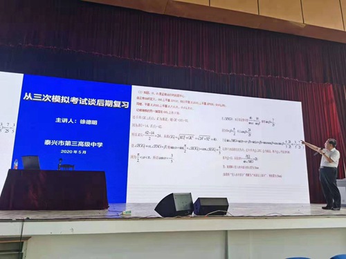 江苏省数学特级教师徐德明为大家做了题为《从三次模拟考试谈后期复习》的专题讲座。