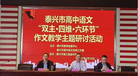 为促进教学教研工作走向深入,引领教师专业成长,提升教育教学质量,9月30日上午,泰兴市高中语文“双主?四维?六环节”作文教学主题研讨活动在我校举行。全市各高中语文备课组长及部分骨干教师参加。
