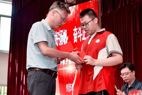作为获奖优秀学生代表,她在开学典礼上呼吁大家带着“收心、决心、恒心、爱心、用心”全新上路,以饱满的激情去拼搏下一个精彩的春夏秋冬,并现场率领全体高二同学起立鞠躬,向与会全体老师致以教师节最高敬意。
