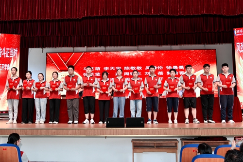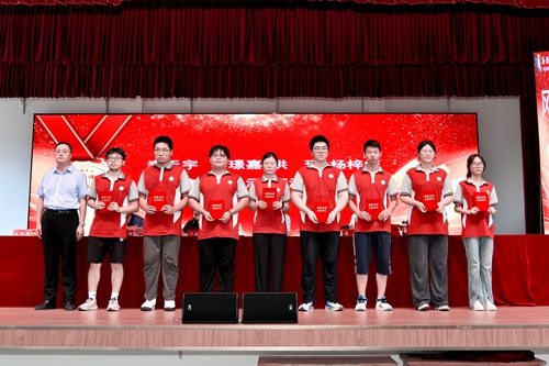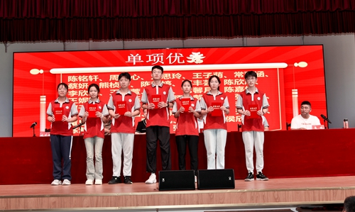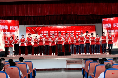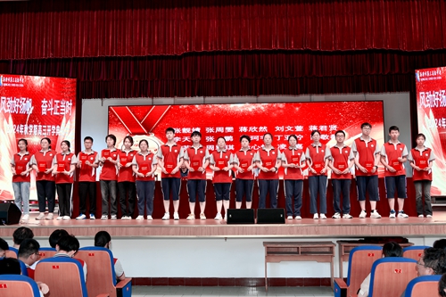 在高二刘建飞主任、高三王亚群副主任宣读表彰决定后,蔡翔校长及相关年级管理团队为上年度取得优异成绩的学生颁发荣誉证书。颁奖仪式由高二焦小飞副主任、高三王亚群副主任主持。