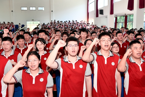 在学校安保处徐兵副主任的带领下,高三全体同学用最坚定的声音,许下最庄重的誓言。