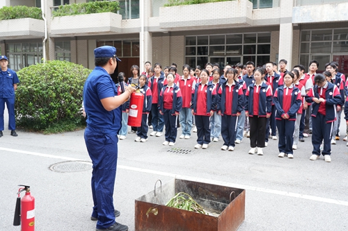 泰兴市消防救援局的专业消防人员详细讲解了火灾的预防、火灾发生时的应急措施、灭火器的正确使用方法等消防安全知识,并现场进行了灭火演示。在消防人员的指导下,部分师生代表亲身体验了使用灭火器灭火的过程。