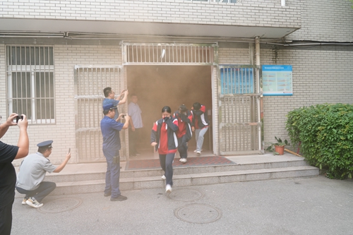 随着烟雾弥漫,应急逃生演练在宿舍楼开始。师生按照预定疏散路线,用手捂住口鼻,弯腰低姿有序地从宿舍楼撤离到指定地点。各楼层的负责老师在楼梯口、拐角处等关键位置进行引导,确保疏散过程安全、迅速、有序。