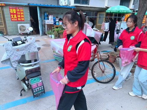 同学们分成若干小组捡拾小区垃圾,在劳动过程中展现出的不怕脏、不怕累的良好精神风貌让小区居民啧啧称赞:这些孩子们真的很棒!