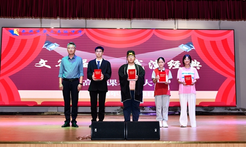 蔡翔校长、张建华副校长、高一年级部陈伟主任分别为获得课本剧展演活动一二三等奖的班级颁发了荣誉证书和奖品。