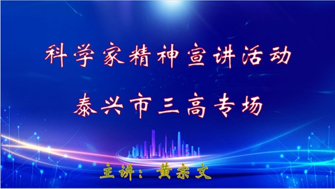 为大力弘扬科学家精神,用新时代科学家精神铸魂育人,激发学生崇尚科学、探索未知的兴趣,树立“科技创新、强国有我”的爱国情怀,11月27日,学校特邀泰兴市“科学家精神宣讲团”来校进行宣讲。活动由高一年级部副主任朱婧主持,高一年级全体师生参加。