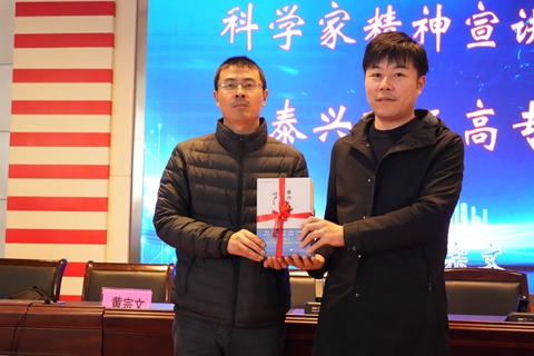 泰兴市科协党组成员刘寅主任向我校赠送了《泰兴院士》一书。