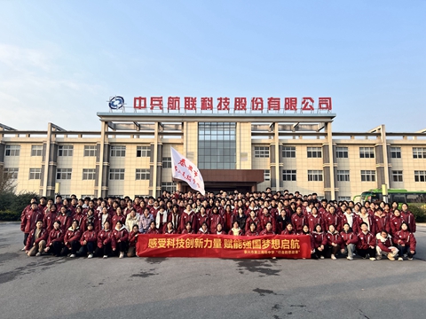 在中兵航联科技股份有限公司,同学们参观了企业智能展厅、研发实验室等场所,了解了叶培建院士对我国航天事业的卓越贡献,聆听了公司自主掌握关键技术的艰辛历程。