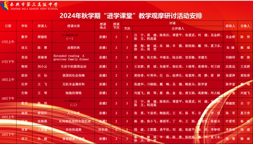 为深化课堂教学改革,汇聚教师智慧力量,着力打造“面向全体,基于问题”的“教—学—评”一致性的“进学课堂”模式,12月17日-19日,我校开展“进学课堂”教学观摩研讨活动。