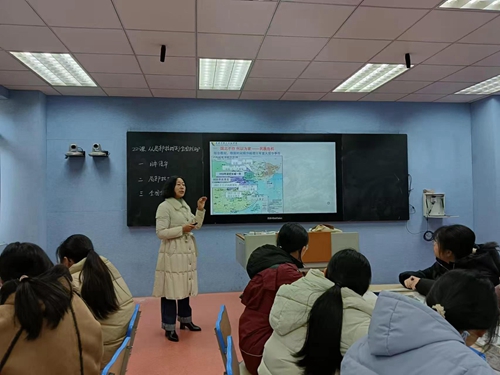 张海燕老师讲述《从局部抗战到全国抗战》,如时光回溯者,以《义勇军进行曲》导入,通过史料、图片和日记展示日本侵华的暴行,引导学生认识全国人民团结抗战的重要意义,深刻理解中华民族爱国主义精神内核。
