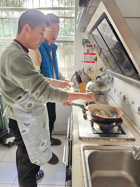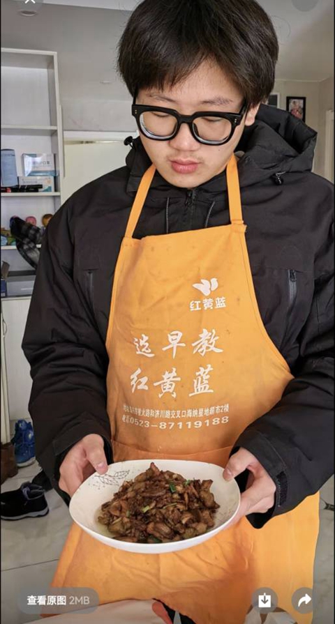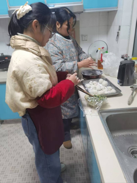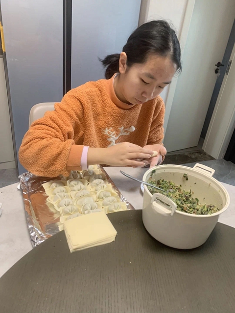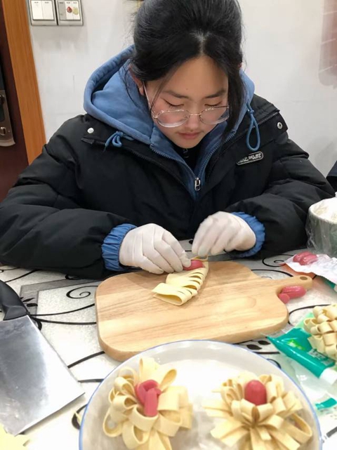 和面、擀皮、包饺子,将满满的爱包裹在其中,餐桌上诱人的美味是同学们劳作的果实。
