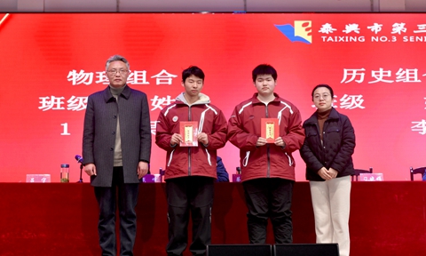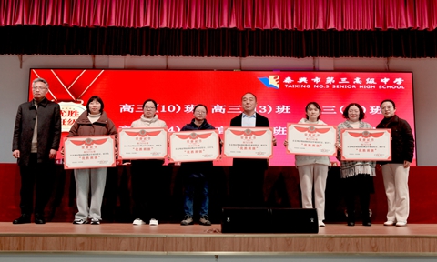 高三年级部副主任王亚群总结分析了泰州市期初调研测试情况:高分学生有所突破,部分学生突飞猛进,学科水平整体提升,同组合班级差距缩小。他建议班主任细化管理,增强管理的针对性,协调学科平衡发展。希望学生保持积极良好的学习状态,梳理问题,解决疑难,展示最佳风采。大会宣读了表彰决定并举行了颁奖仪式。