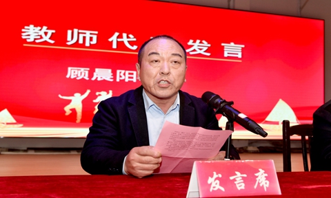 顾晨阳老师代表全体高三教师表示,定将竭尽所能、倾囊相授,希望同学们不断“固根基、扬优势、强弱项”,有困难就找老师解决,有困惑就找老师倾述。