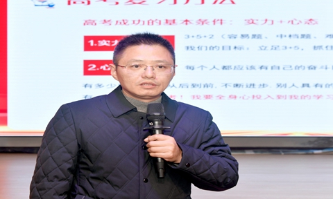 高三年级部主任戴峰鼓励大家以“追求卓越、不断超越”的三高精神勇闯一回,再拼一把:克服不良心理,树立必胜信心;选择恰当方法,提高学习效率;挖掘复习潜力,向问题要分数。要正确处理好计划与落实、习题与课本、攻克薄弱学科与发挥优势学科、主体作用与主导作用、学习与锻炼休息这五种关系 。