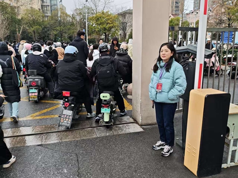 学生在校期间,值班人员还会不定期进行巡检,引导同学们按规定路线通行。