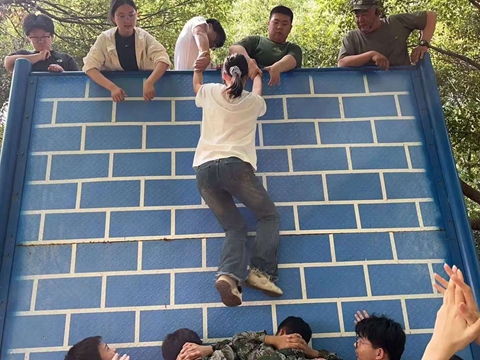 高墙前,人梯筑起、手臂相连,托举与攀爬的瞬间,泪水与欢呼交织。“当我踩上同学肩膀时,突然明白什么是‘值得托付的伙伴’。”一名男生感慨道。