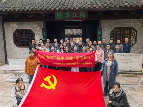 为深化“周末去党校”轮训成效,强化“进学先锋”党建品牌建设,推动党建与教育教学深度融合,11月9日,泰兴市第三高级中学组织全体在岗党员教师走进襟江书院、杨根思烈士陵园开展教育实践活动,深刻体悟新时期泰州“三个不相信”城市精神和泰兴“敬慎”教育精神。