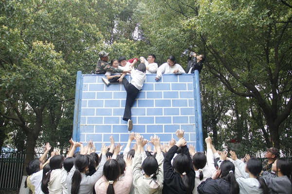 毕业墙:凝心聚力,共破难关!这是一场集体力量的终极考验,没有个人英雄,唯有并肩作战——有人甘当人梯,有人奋力拉扯,在协作中学会责任与担当,在坚持中突破自我,留下一段难忘的集体记忆。