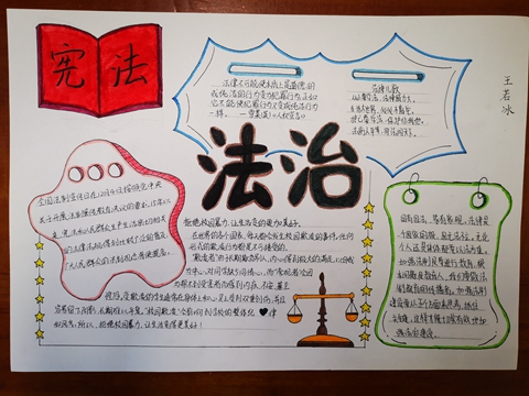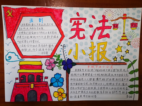 组织学生学习宪法,让学生通过手抄报的形式,让学生将学习所得以手抄报的形式呈现。