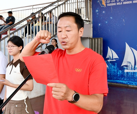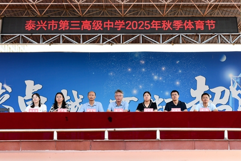 蔡翔校长宣布泰兴市第三高级中学2025年秋季体育节开幕。