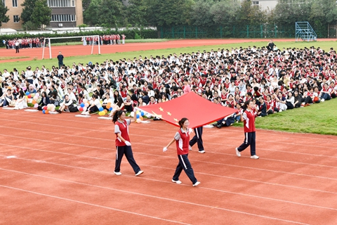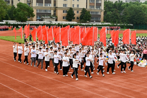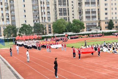 开幕式隆重简朴,国旗方阵、校旗方阵、鲜花方阵、红旗方阵等逐一接受主席台检阅。